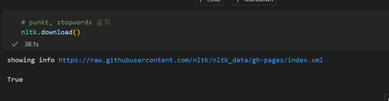 4. 작동 확인 및 nltk 패키지 (punkt, stopwords 설치)