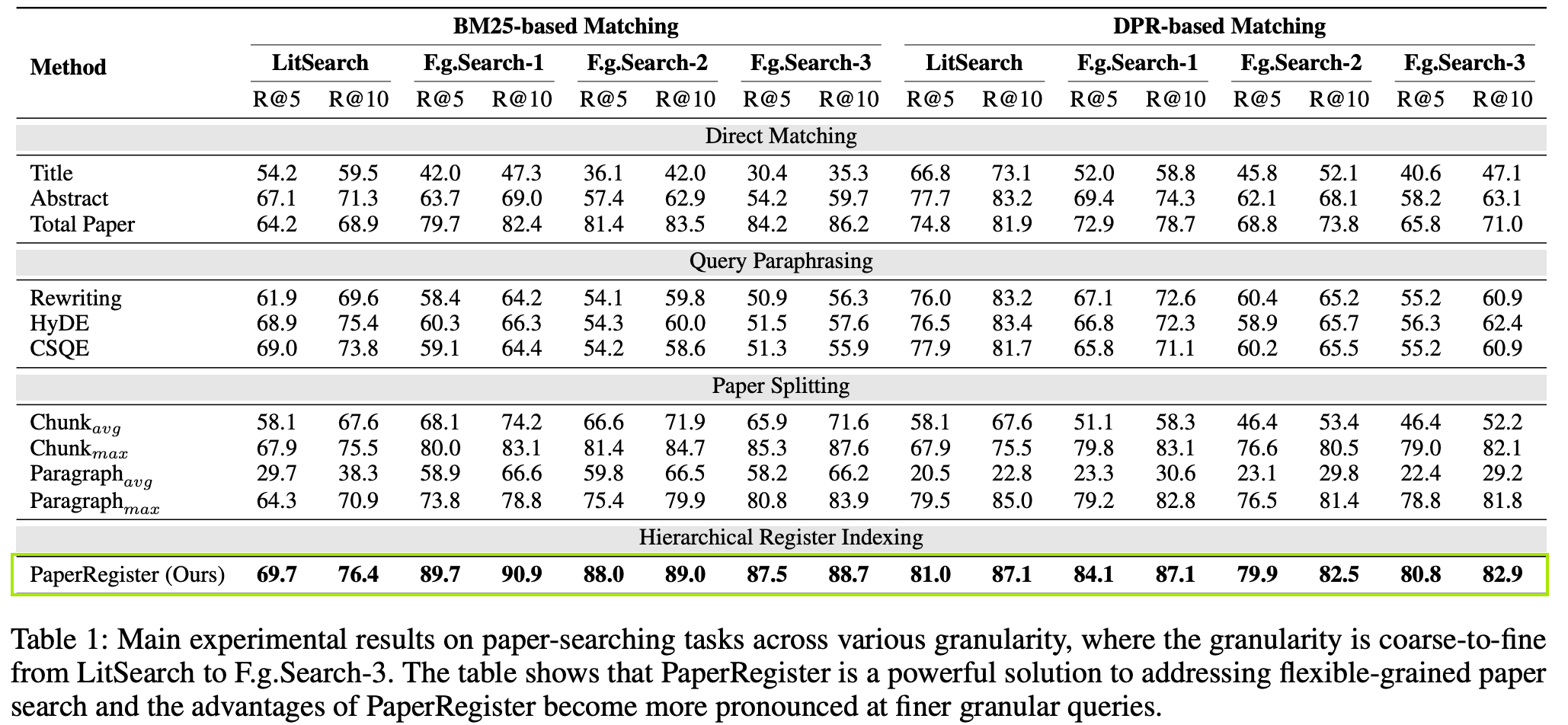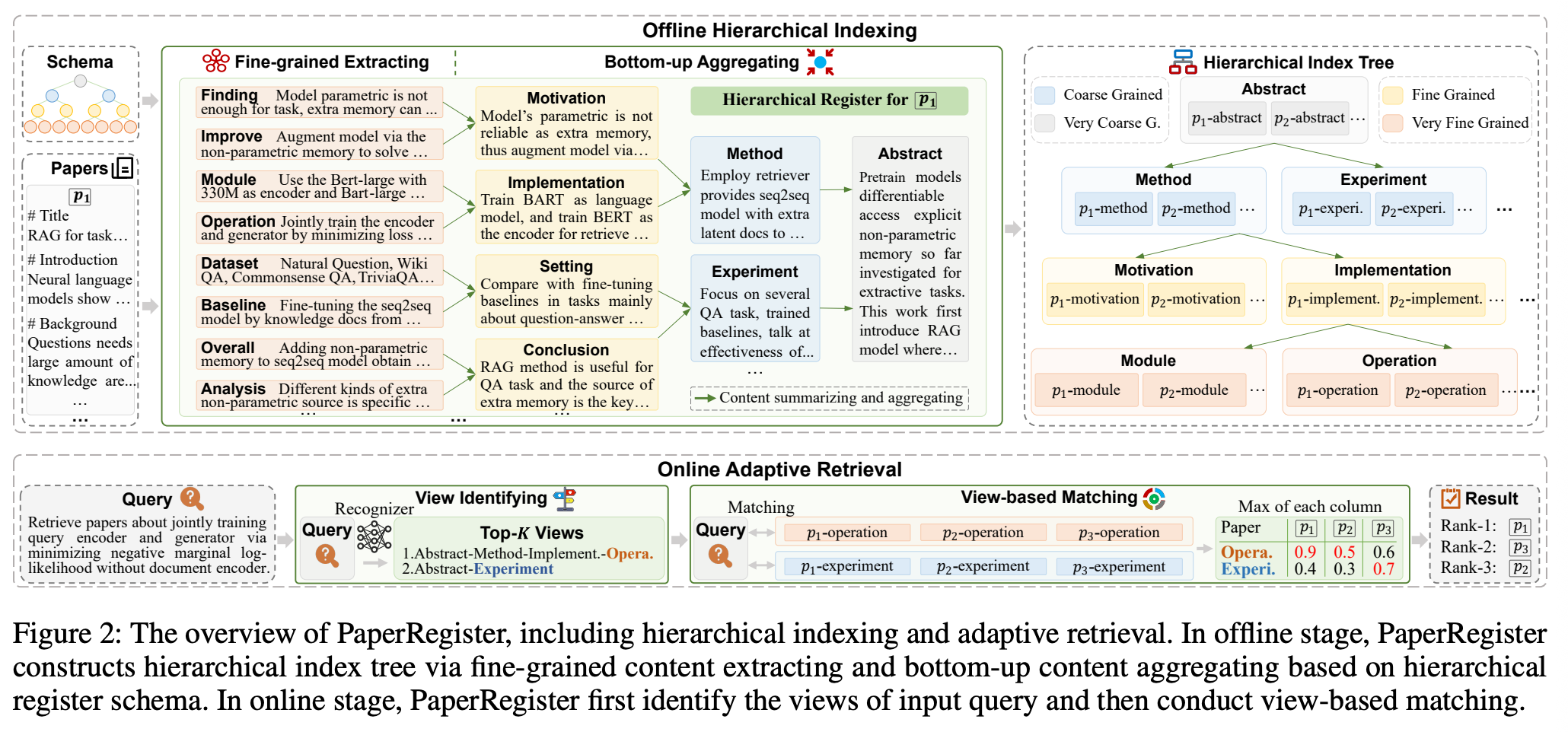 - 오프라인 계층적 인덱싱 + 온라인 적응형 검색으로 구성된 Paper Register 제안