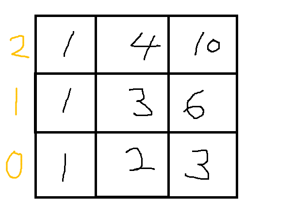 2층 3호는 1 + 3 + 6 = 10 을 가진다.